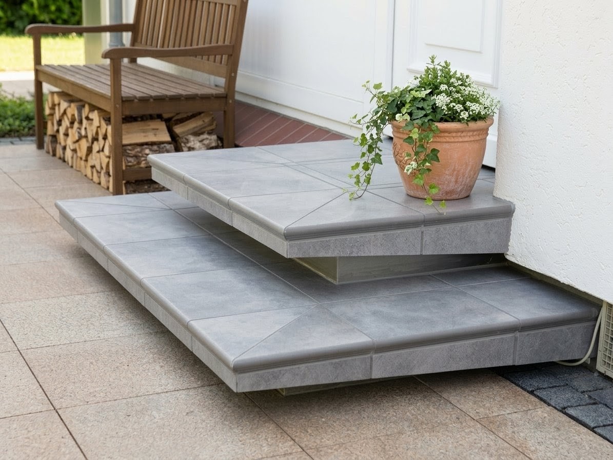 Eingangspodeste & Treppen: Sicherer Tritt bei jeder Witterung durch spezialisierte Formteile und rutschhemmende Oberflächen.